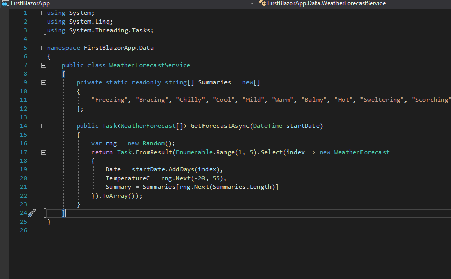 services.AddSingleton<WeatherForecastService>();