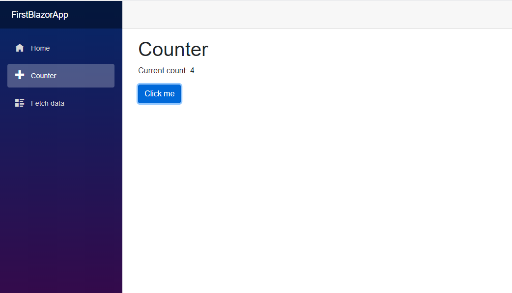 - Projeyi create olduğunda karşıma .razor uzantılı sayfalar çıktı. Bu sayfaların shared kütüphaneleri NavMenu.razor ve MainLayout.razor ile birlikte 3 örnek yapılmış. Bir tanesi welcome sayfası, ikincisi sayı arttırma sayfası diğeri ise dataları çekip tablo görünümünde gösterebildiğimiz bir yapısı olan sayfa.